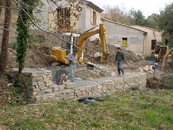 Gabions métallique avec armatures de liaison et d'ancrage dans le lit d'un ruisseau